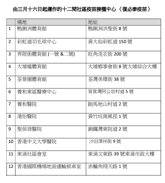 新冠疫苗 新增12間復必泰接種中心及7優先群組一覽 附接種中心名單及地址 23 59 港聞 即時新聞 明報新聞網